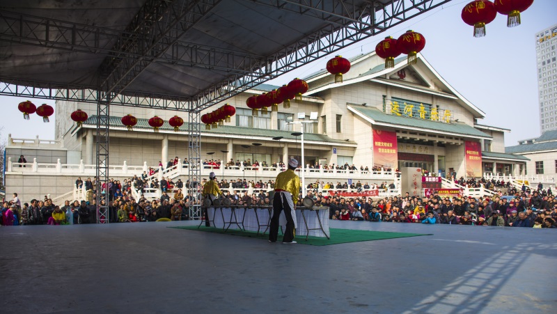 春节期间济宁市民在山东省十大优秀文化广场免费看大戏