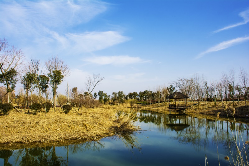 作品:蓝天白云下湿地景观