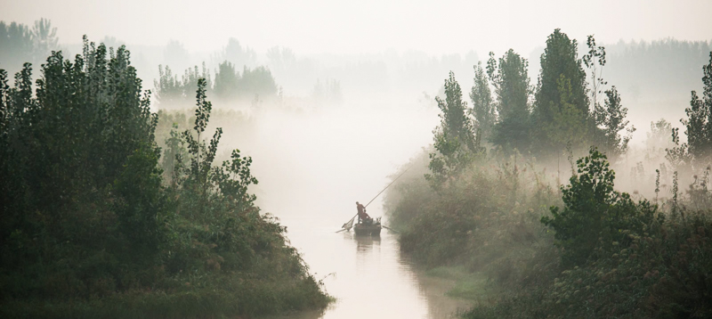 微山湖里早起的捕鱼人