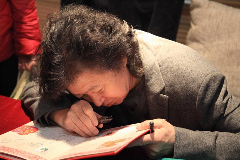 摄于山东龙口市集邮品鉴赏会,被摄者姜伟杰为我国著名邮票雕刻家和设计师,画家;80年猴票既是他的雕刻杰作。