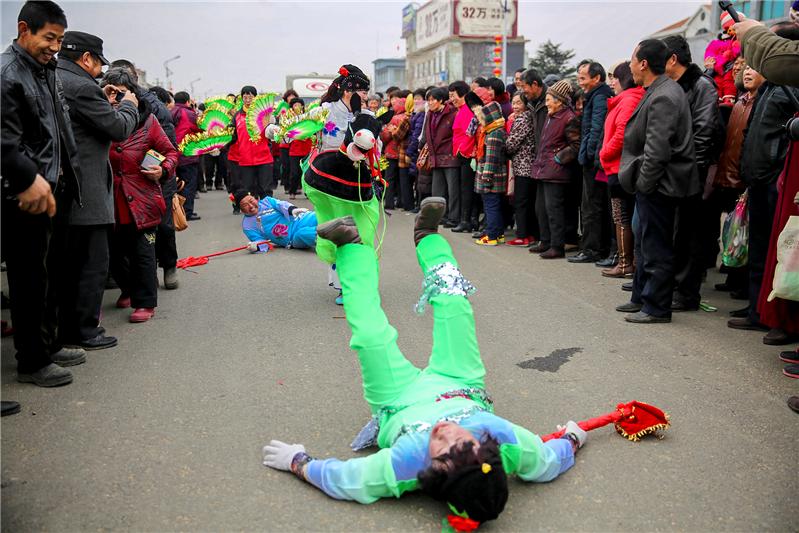 2015年2月28日,威海市文登区高村镇大集,精彩传统活报耍毛驴吸引了大家。