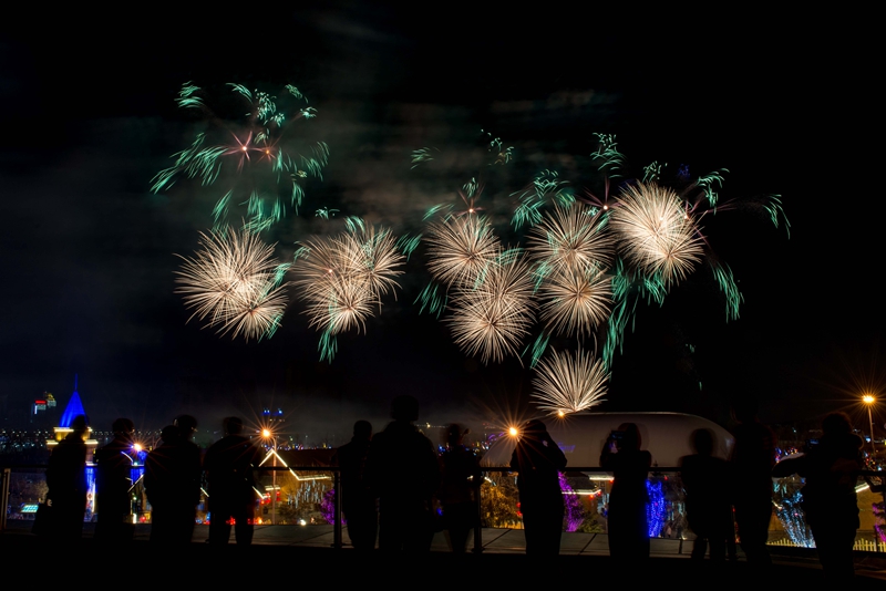 2015年3月5日在青岛市黄岛新区城市阳台上演了一场烟火盛宴。市民在观赏烟花