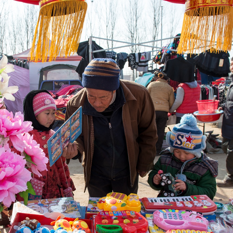 2015年2月10日,正值理务关大集,爷爷在年集上和孙子孙女选礼物