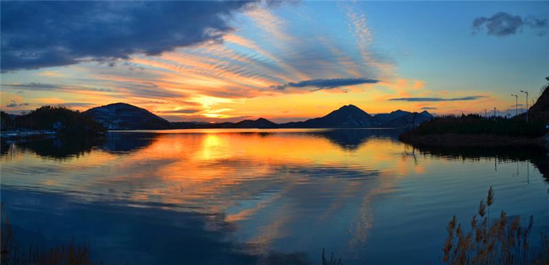作品:春湖落日