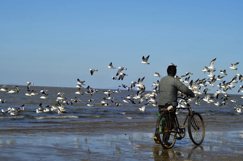 3月10日下午,蓬莱市天气晴好,大量海鸥聚集在浅海处觅食,时而飞起翔舞,时而集结觅食,煞是惹人喜爱。