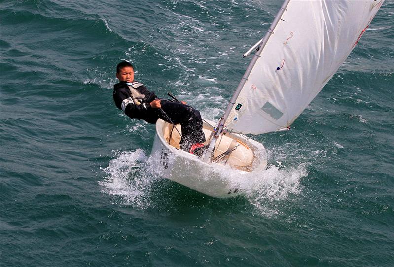 14年5月2日拍于青岛奥帆中心,少年驾驭OP帆船激流勇进。