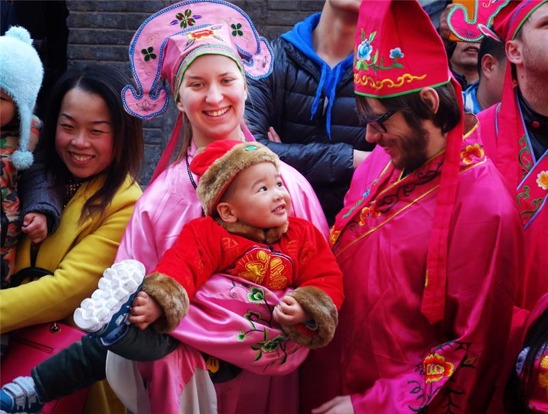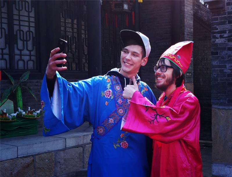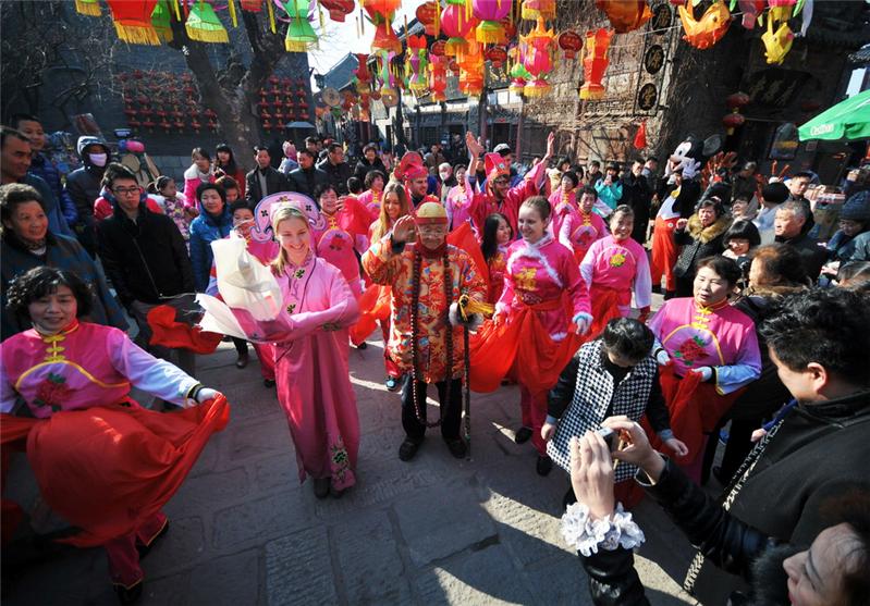 大年初一留学生们到淄博周村古商城感受中国传统民俗年
