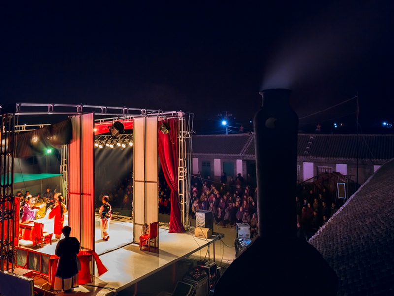作品摄于山东招远市,剧团送戏下乡夜场演出。