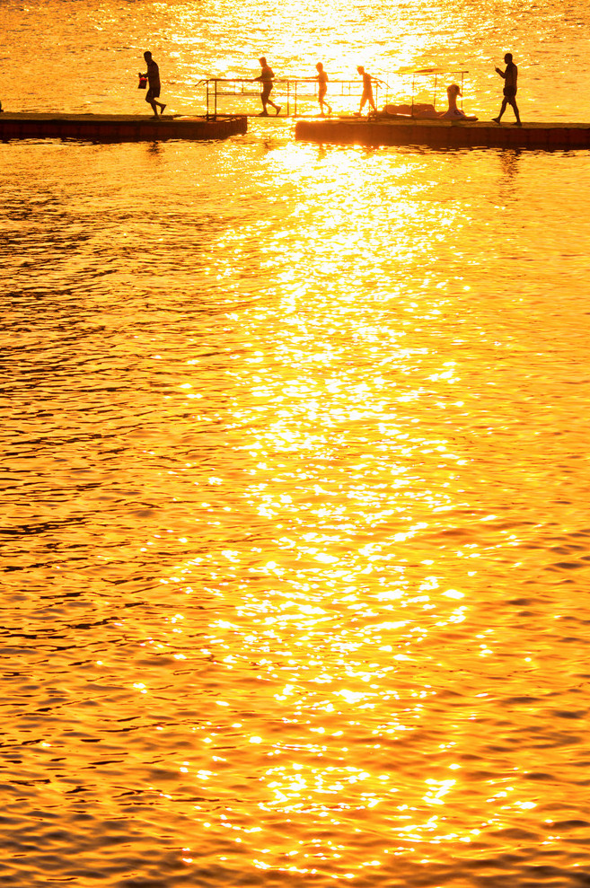 金色的海面,穿梭的游人,谱写出一首金色的夏日恋曲。