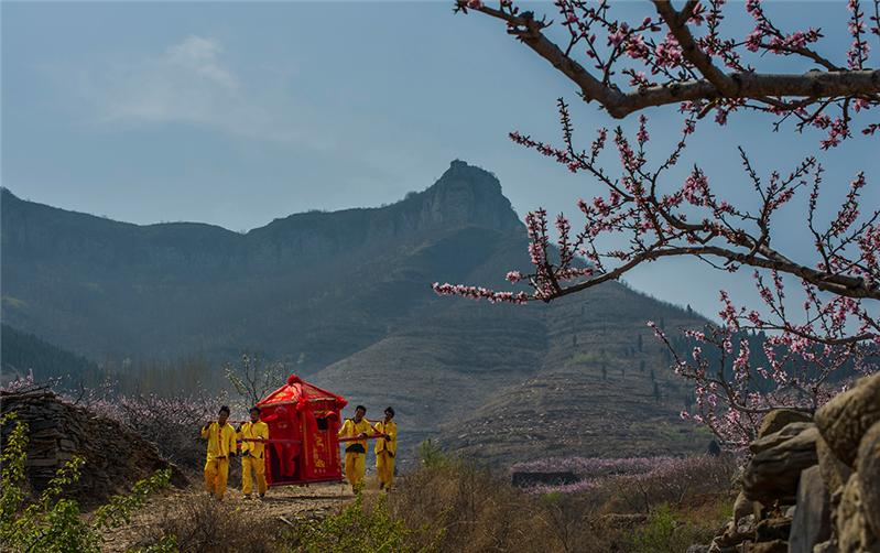 山东枣庄,山区迎亲路上。
